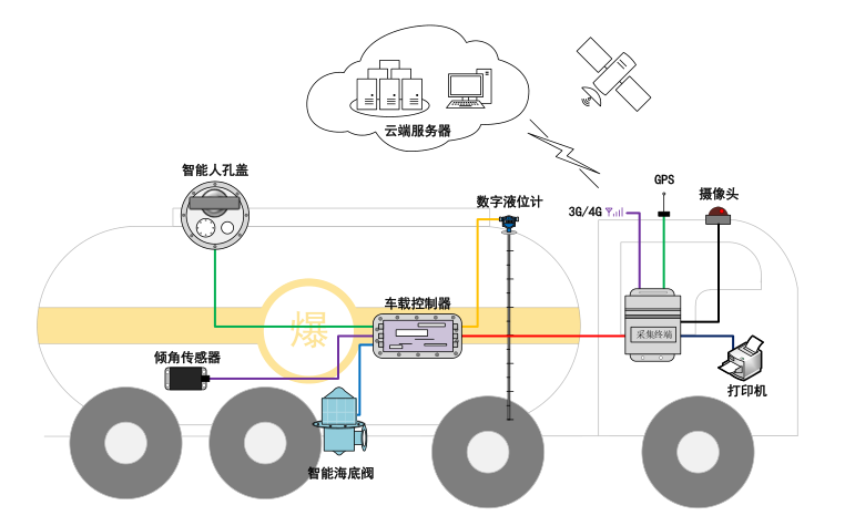 油罐车智能管理控制系统适用于油罐车环境。可靠、稳定、智能,结合云端管理系统大大节省人力物力,方便快捷的管理符合物联网发展趋势。